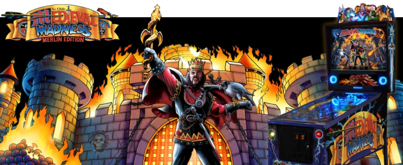 Jogabilidade viciante e complexa, um campo de jogo intrincado e um senso de humor perverso fazem do Medieval Madness uma das máquinas de pinball mais procuradas do mercado. Apenas 4.000 foram produzidos originalmente, mas mais recentemente gerou sua própria reconstrução moderna em Medieval Madness Remake. No entanto, para colecionadores reais, apenas o original totalmente recondicionada por nossos técnicos – serve.